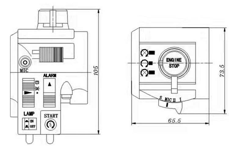 | Function | 1. Lighting power switch 2. Main power switch 3. Siren selection switch 4. Speaker socket 5. Volume switch 6. Overtaking alarm sound switch |