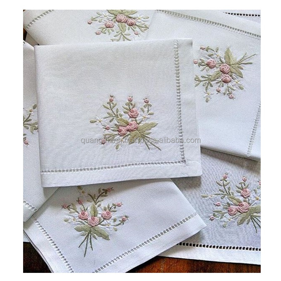 Hand Embroidered Napkins, 100% Cotton Quang Thanh Hand Embroidered