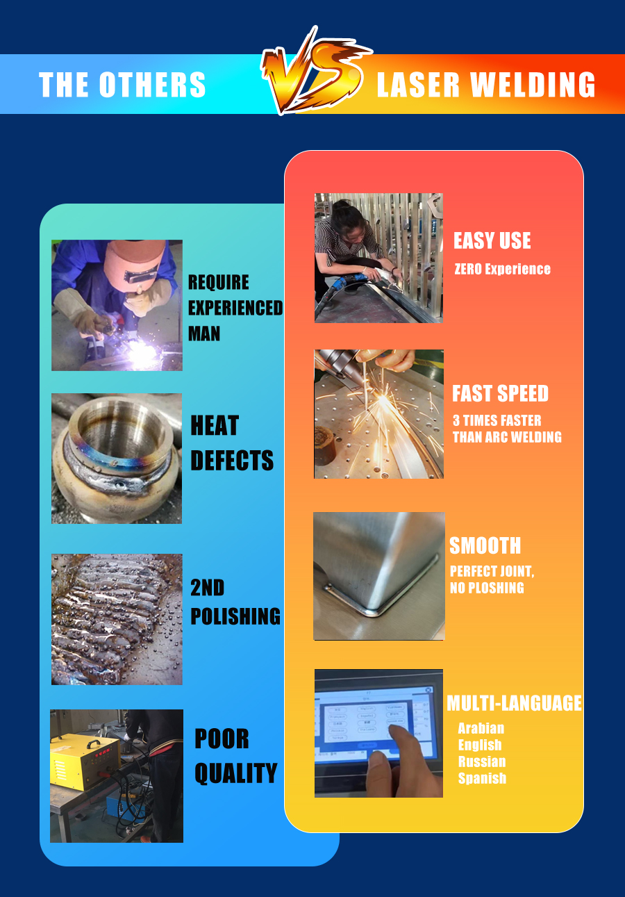 Laser welding power adjustable, thin stainless steel welding without any problem.