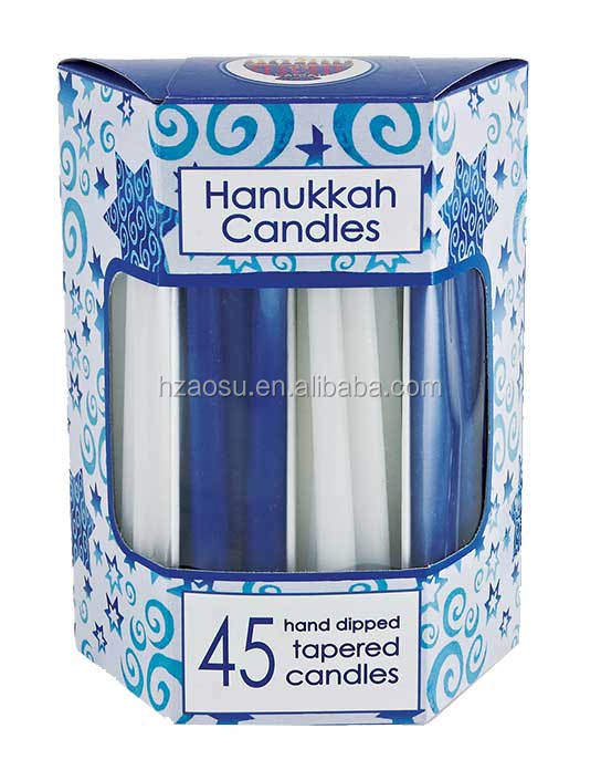 | Product name: | Hanukkah Candles Tapered Multi Tri-Colored Hand Decorated Candles; | Packing: | Paper Box; |