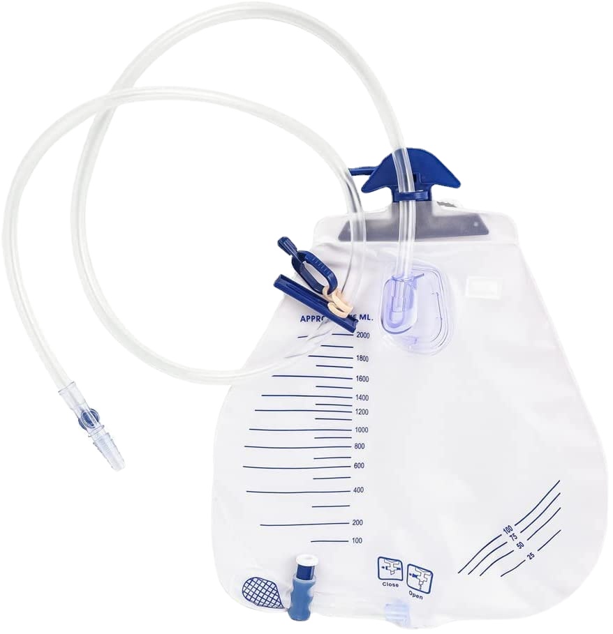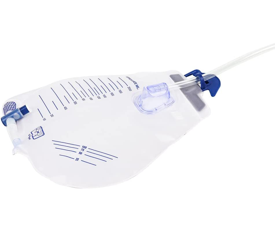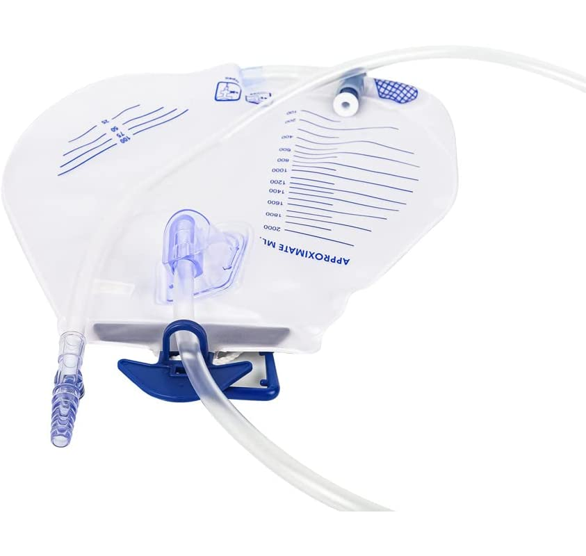 - The drainage bag also features an easily accessible sampling port as well as measurement markings for easy determination of urine volume.