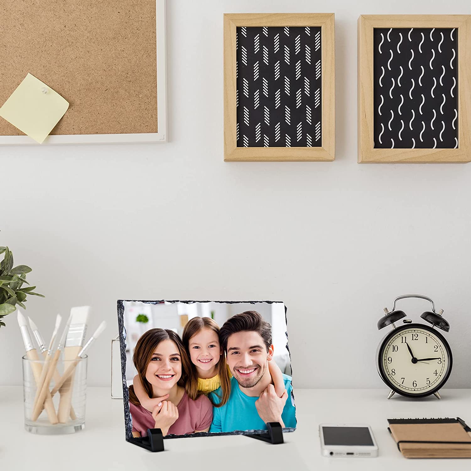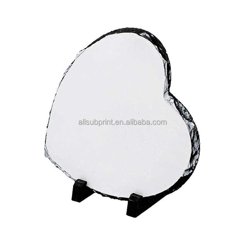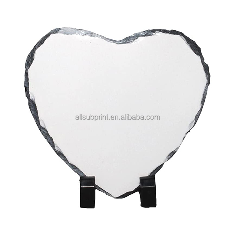 Heat Pressed Custom Photo Frame Heart Rock Slate Photo Slate with Plaque Stand Feet