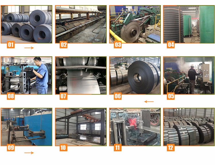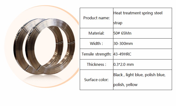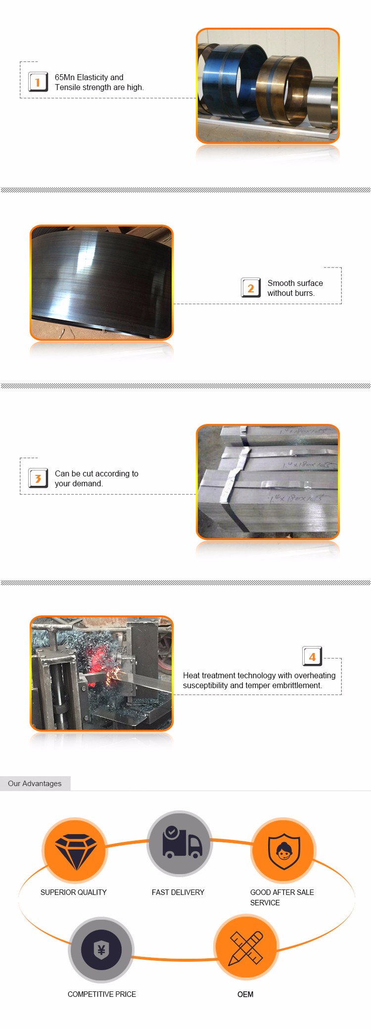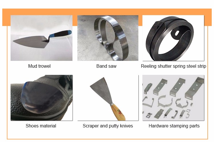Products are widely used in tool hardware, various trowels, shovels, woodworking band saws, automatic clutch patches, spring steel belts for rolling shutter doors, clockwork springs, shoe materials, hook materials, spinning, standard stamping, packing belts and other industrial uses steel belt.
