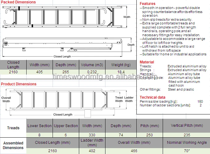 Heavy Duty Aluminum Sliding Attic Attic Ladders