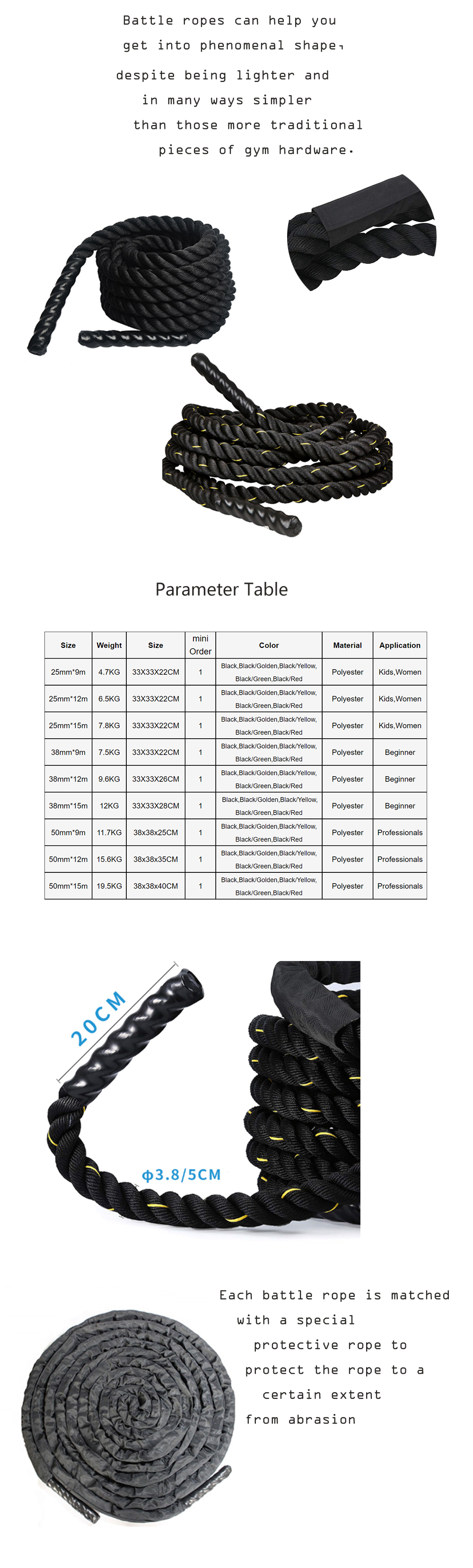 | product name: | Polypropylene Battle Rope | Material: | Polyester/polypropylene, PET |