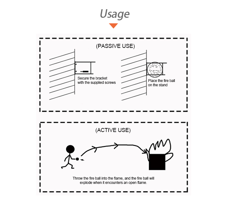 2. When simply thrown into the fire, it will activate within 3 seconds and effectively disperse the fire extinguishing chemicals.