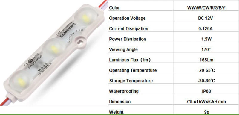 High Brightness 12V 1.5W Single Color Super Ultrasonic Injection SMD 5730 SMD2835 Korea Samsung LED Module