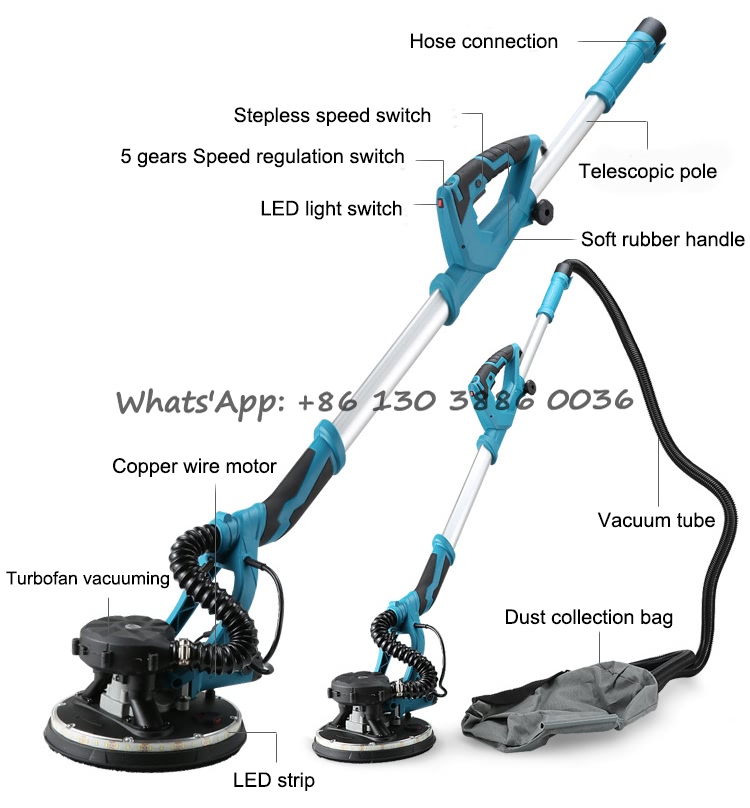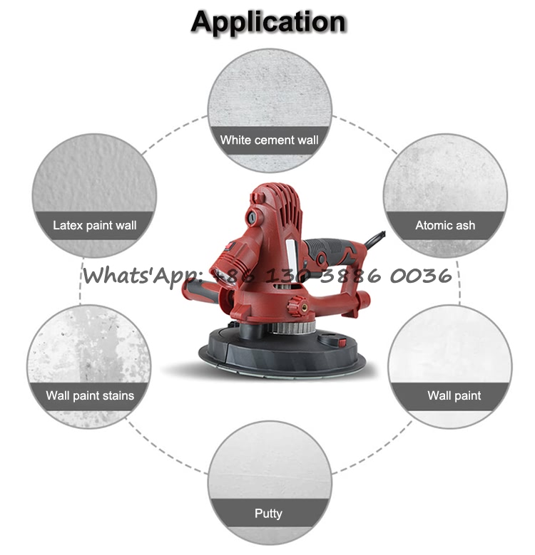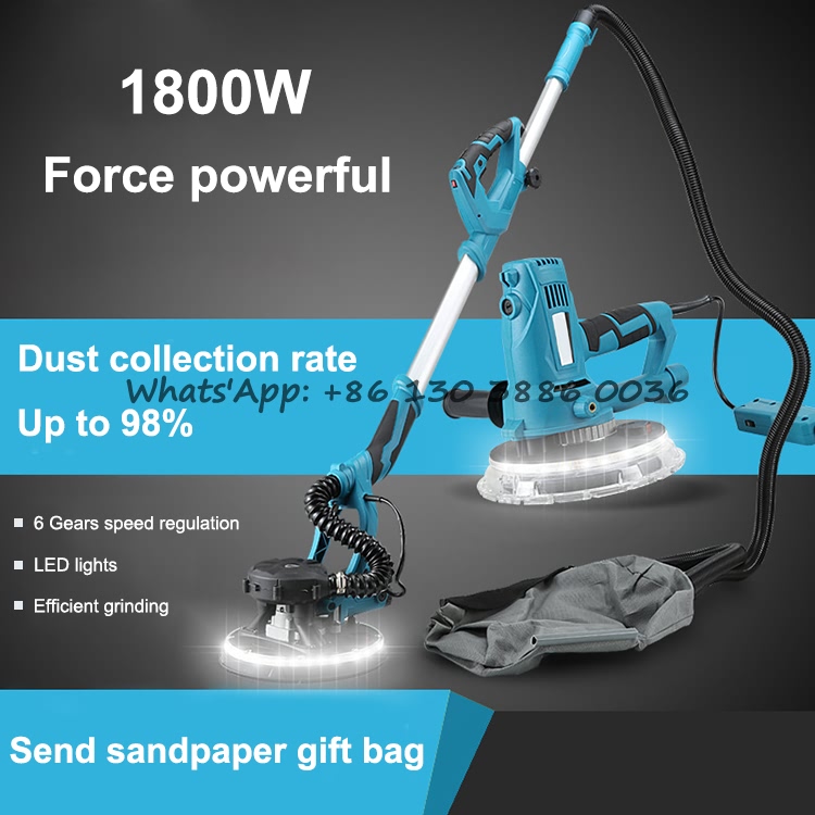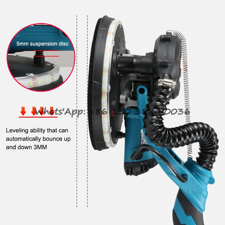 | feature | 1. Copper core motor, strong power, high temperature resistance, stronger performance, stable and long-term adaptation to various harsh environments. 2. Turbofan dust collection system with strong suction, giving you a better experience. 3. Polished carefully, no sand marks on the wall. Suspended grinding disc and upgraded sandpaper, smooth and delicate. 4. Hang up and down 3MM, for uneven walls, it can automatically hang up and down 3MM, and there will be no sanding and bottoming. 5.360° surround, dual LED lights with illumination, you can see the real blind spot lighting effect. 6. Removable chassis, grinding without dead angle, 100° smoothing once without dead angle. 7. Fan vacuuming system, dust-free polishing is healthier, vacuuming is cleaner, farewell to dust damage, environmental protection and health. |