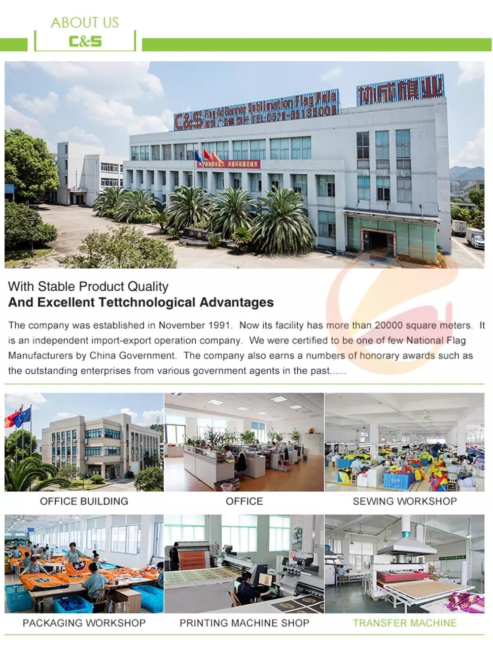| Flags and Banner Materials: | 100% polyester, 100D, 150D, 300D or 110 gsm knitted polyester. | place of origin; place of origin: | Zhejiang, China |