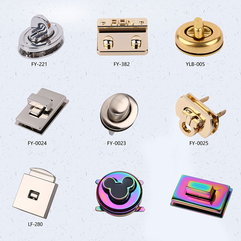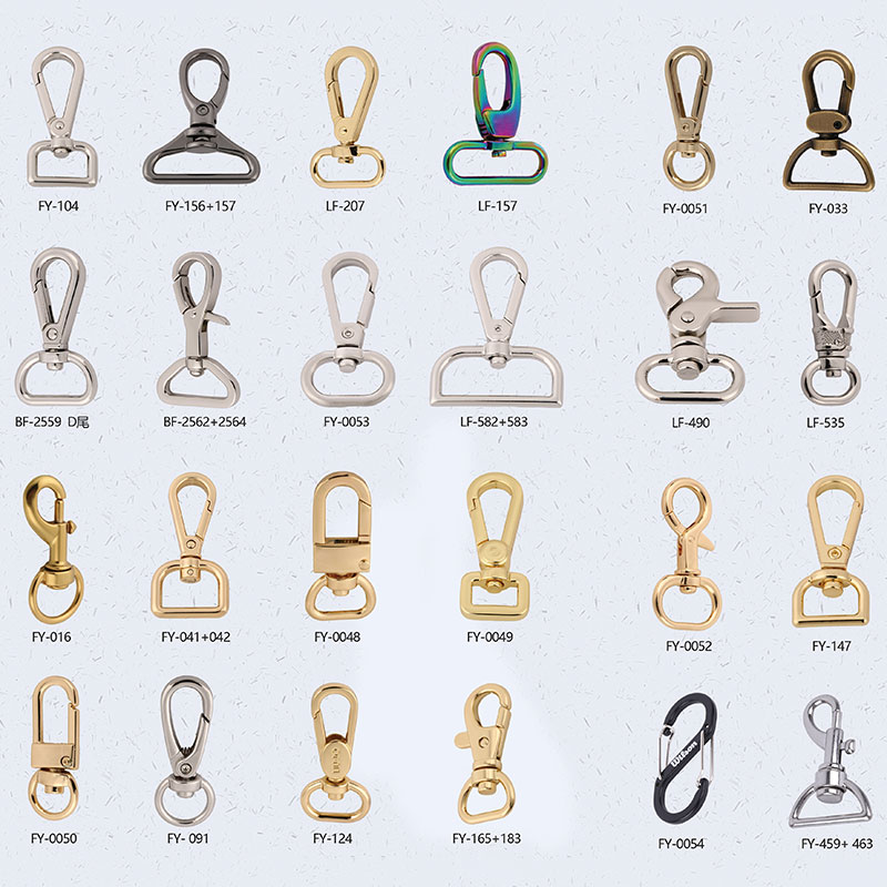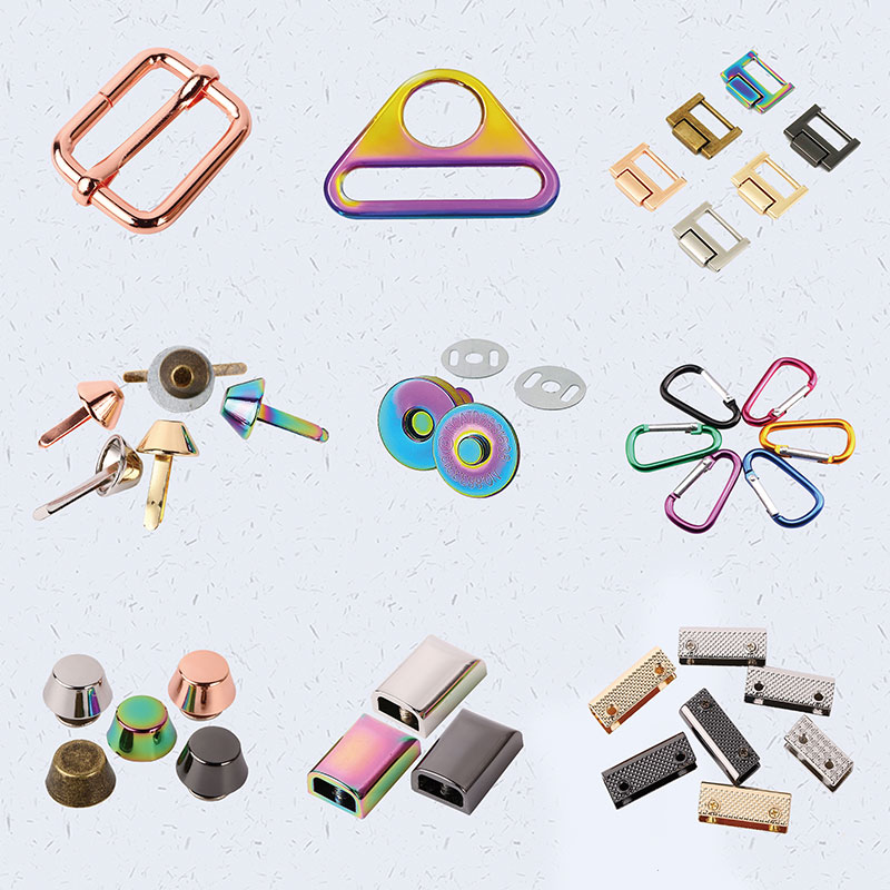 High Quality Custom Handbag Hardware Metal Bag Accessories Pin Buckle Rivet Belt End Wallet Foot Lock D Ring Swivel Hook