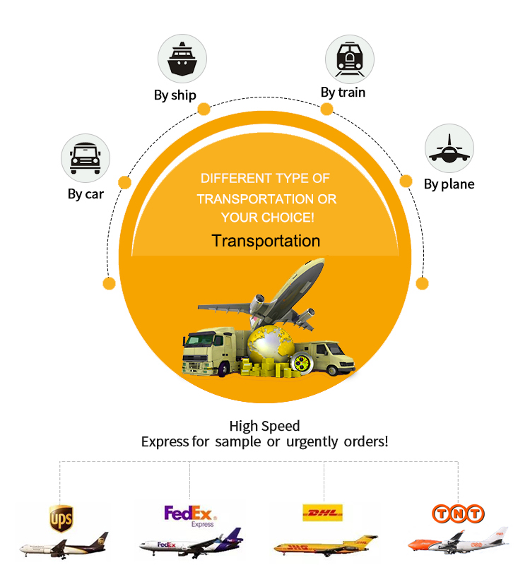 --For the small quantity orders or the urgent needed products , we can send them by express delivery, and the large quantity goods are according to you demand, by air or ocean all can be accepted.