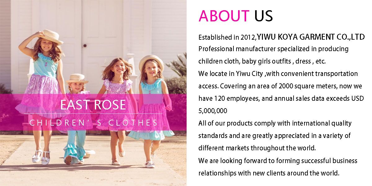 Our main products include baby jewelries, outfits, book cover romper, bloomer, dress, pettiskirt, shirt, hats, etc.