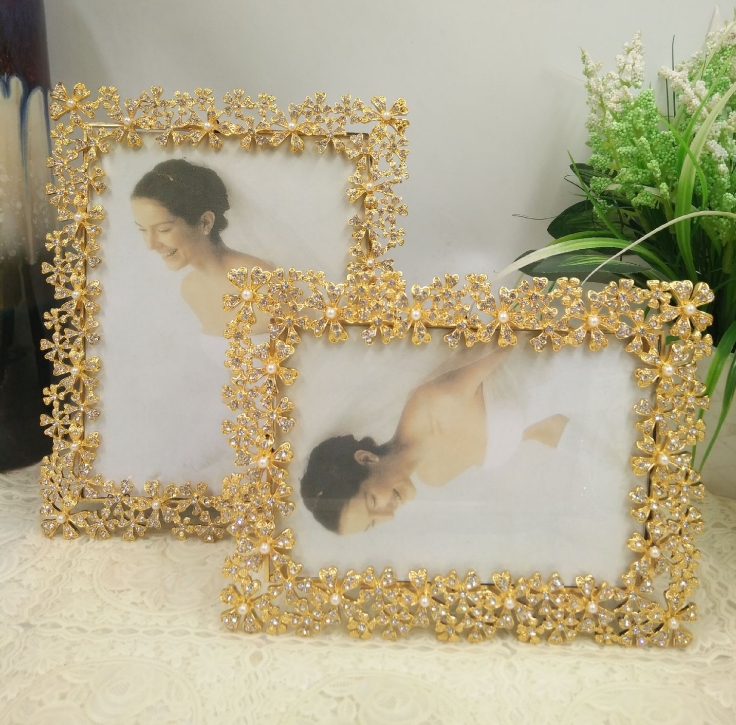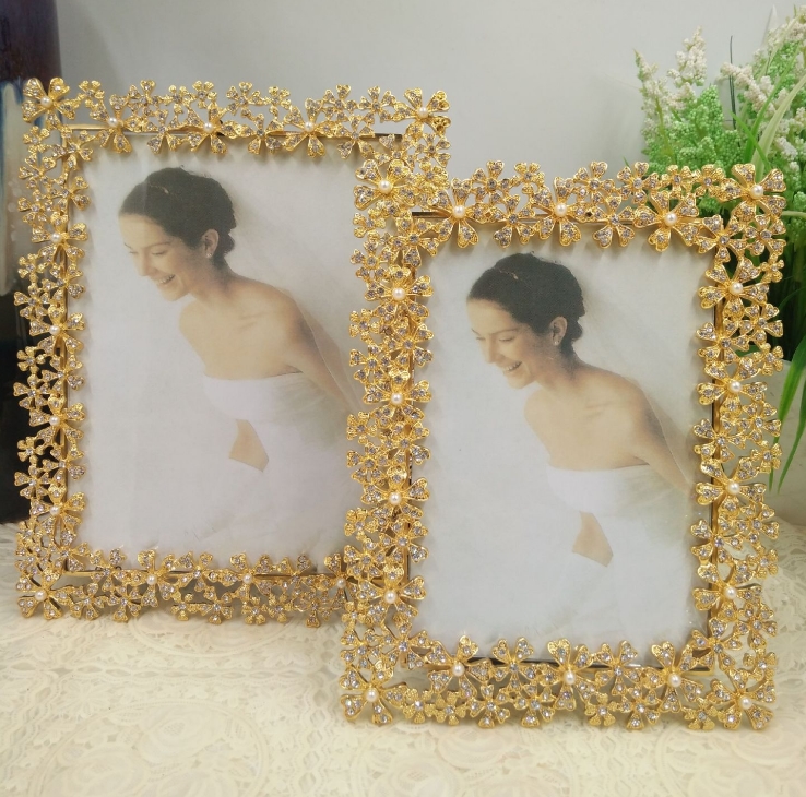 High Quality Gold 7 Inch Crystal Alloy Photo Frame