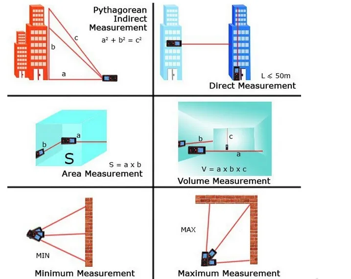 Laser range finders have a wide range of applications in construction and industry. Especially in large areas such as rooms, apartments, buildings, real estate, factories, warehouses, gardens, roads, infrastructure, etc., it is very useful and convenient to make precise measurements of distances, areas and volumes.