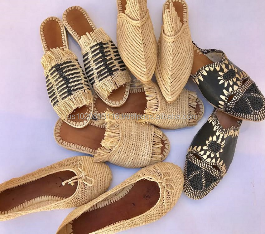 High Quality Handmade Moroccan Raffia Slipper Selection