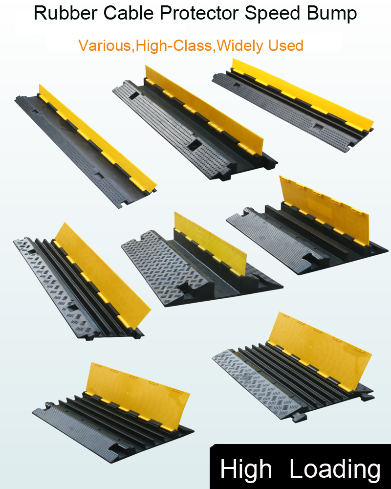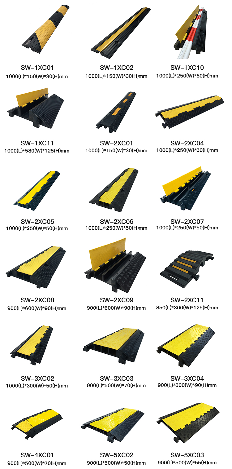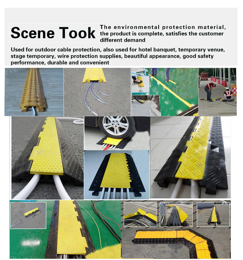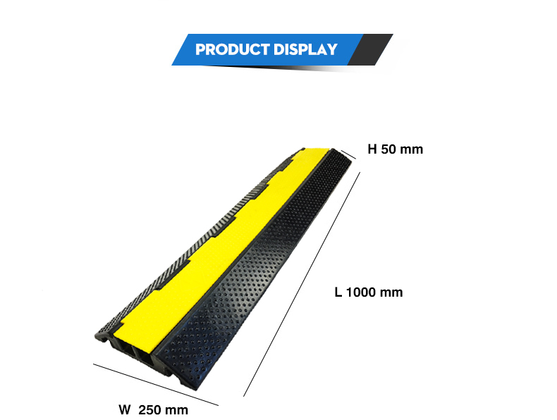 High Quality OEM Factory Recycled Solid 1000*250*50mm 2 Cable Channel Ramp 6kg Yellow+Black Speed bumps with cable protection bumps