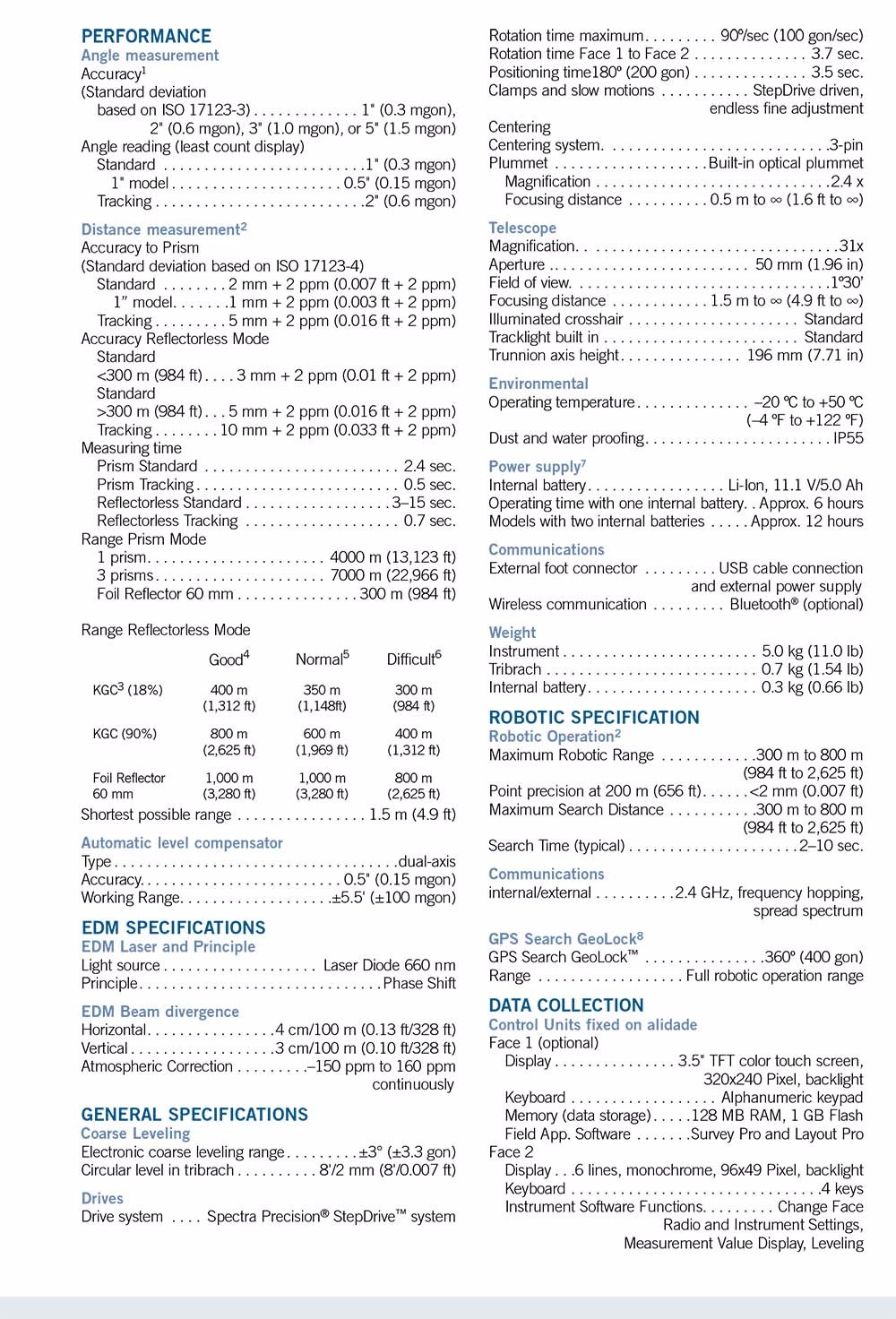 The Spectra Precision FOCUS 35 is a new range of motorized total stations providing high speed, accuracy and precision in measurement. The FOCUS 35 robotic instrument moves the power of the observer from the instrument to the range pole, improving efficiency. The speed of observation and precise positioning of the FOCUS 35 Robotic Total Station is provided by patented StepDrive™ motion technology, which controls the horizontal and vertical motion of the motors, eliminating the need for traditional motion locks. The FOCUS 35 includes a tracking sensor that uses LockNGo™ FastTrack tracking technology, enabling the instrument to constantly lock onto the prism.The FOCUS 35 RX extended operation models feature market-leading battery life.