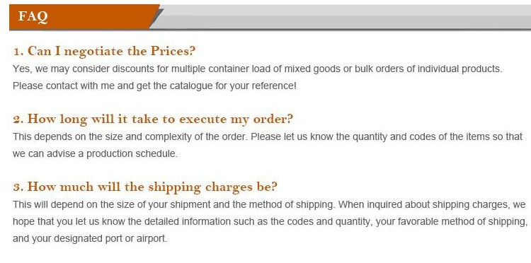 | payment terms: | T/T - 30% as deposit before production, the balance should be paid before loading | |