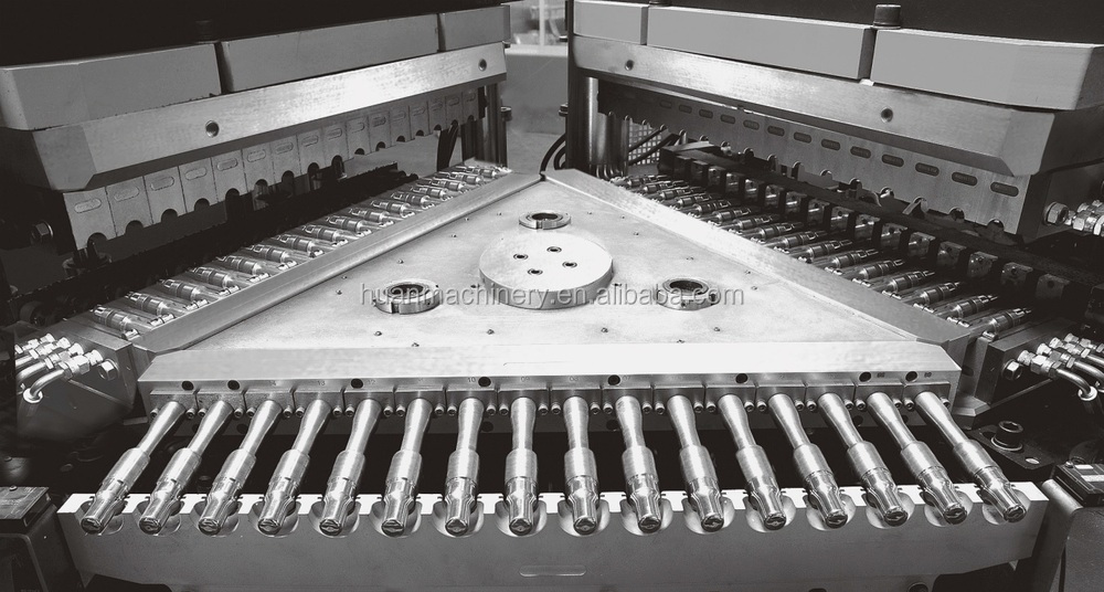 This injection blow molding machine is a one-step automatic injection blow molding machine, suitable for processing thermoplastic materials such as PE, PP, PS (SAN, PMMA, PC, PETG, PEN). Widely used in the manufacture of packaging bottles for medicine, health products, food and beverage, cosmetics and other industries. This machine has one mold and multiple cavities, which can be fully automatic and continuous production. It adopts horizontal three-station dividing head, hot runner system and multi-stage injection molding system. The plastic injection, blow molding and demoulding stations work simultaneously to ensure the efficient and energy-saving operation of the machine. Our IBM series guarantees the flatness of the bottle mouth and the high precision of the inner and outer diameter of the bottle neck and the thread without any waste products. It is the standard equipment of modern environmental protection production.