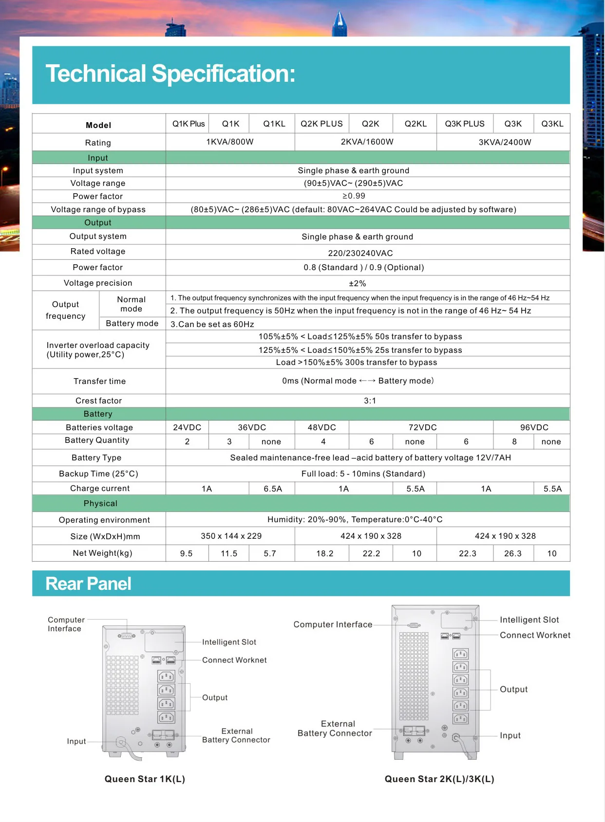 | Type: | On-line; | Model Number: | Queen Star Series 1K-3KVA; |