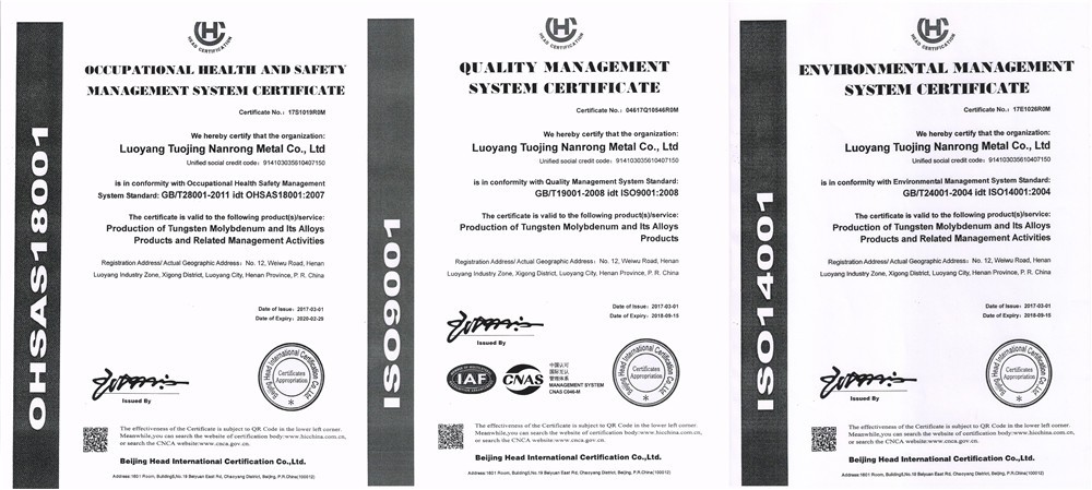 Luoyang Tuojing Refractory Metal Co., Ltd. has modern workshops and equipment, high-quality raw materials, scientific and rigorous production technology and advanced testing equipment. Our products enjoy a good reputation at home and abroad. We are willing to help our customers occupy more market share in the world.