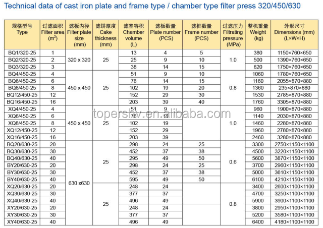Automatic filter press, membrane filter press, mechanical filter press, jack filter press, cast iron plate and frame filter press, stainless steel filter press, disc filter press, belt filter press, concentrated dewatering belt press Filter, three-pedal centrifuge, plate centrifuge, decanter centrifuge, tubular centrifuge, vacuum disc filter, various filtering equipment, filter plate, filter cloth, etc.
