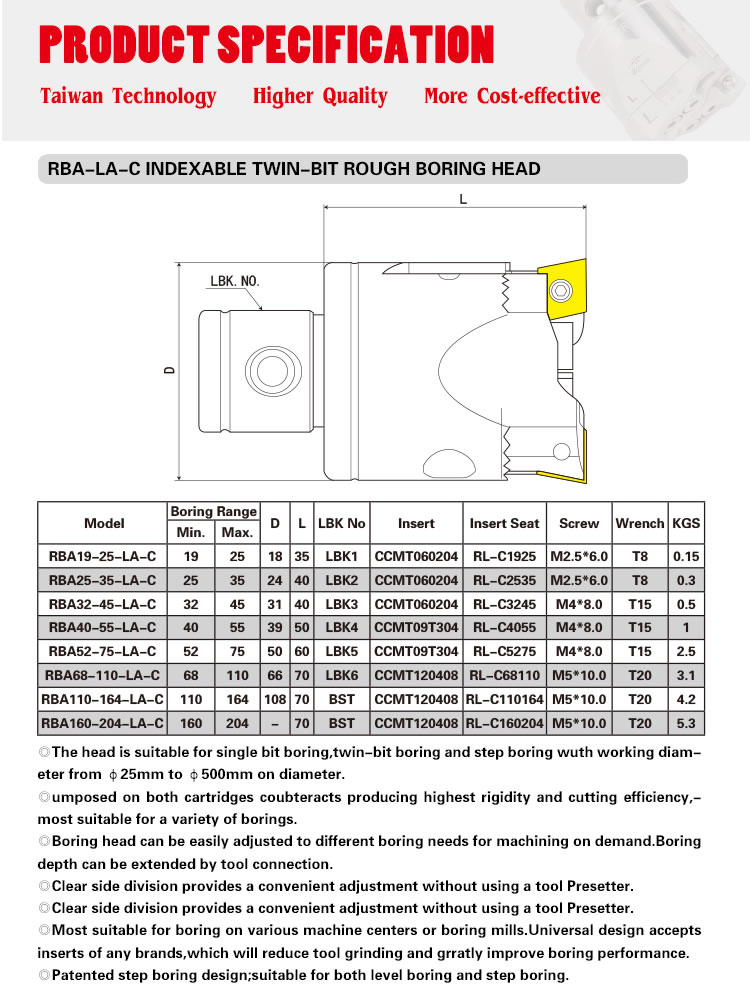 High quality CNC rough boring head with indexable double drill matching LBK holder