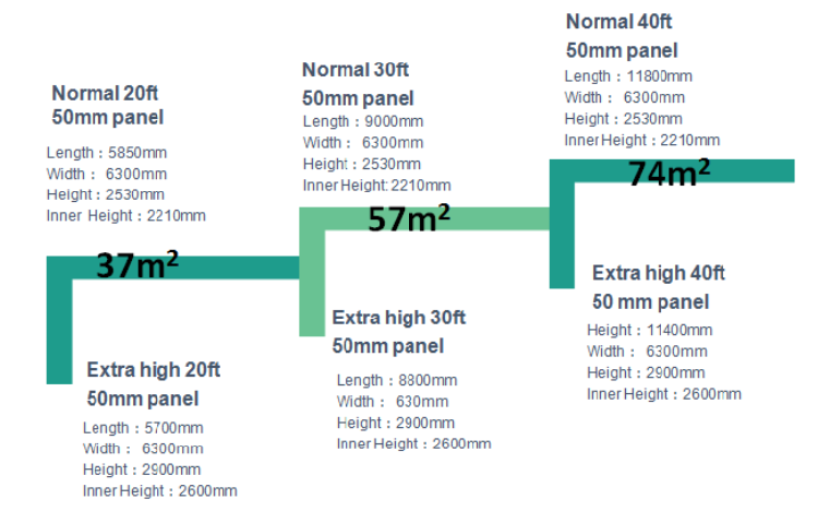 L5850mm*W4350/5100/6360mm*H2500mm |