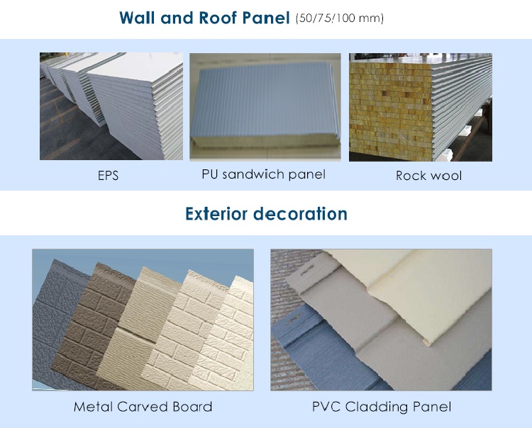 | brand: | in the text | wall: | 50/75/100mm Eps/rock wool/PU sandwich panel |