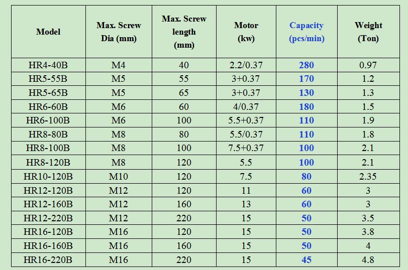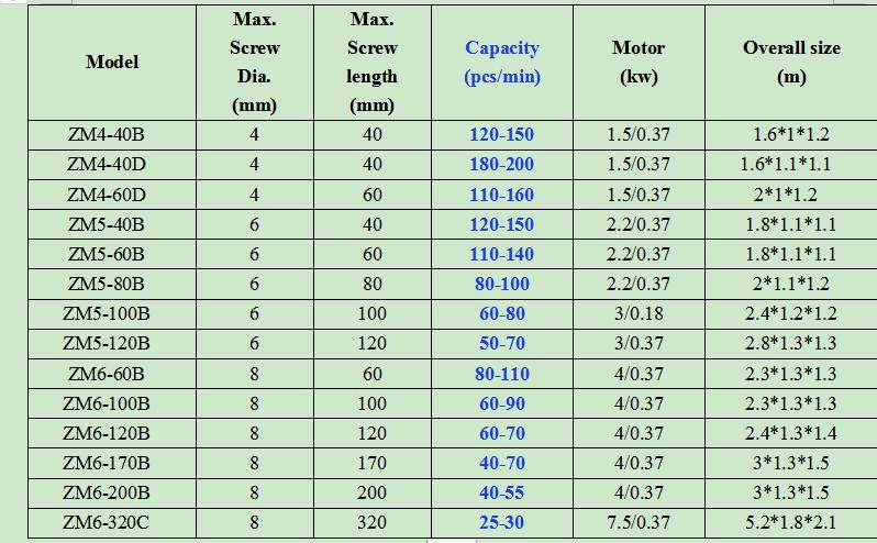 Our factory has been specialized in producing all kinds of screw, bolt and nut manufacturing machinery for more than 30 years. You can send us the size (diameter and length) and pictures of the product you want to make, then we will recommend the suitable machine to you.