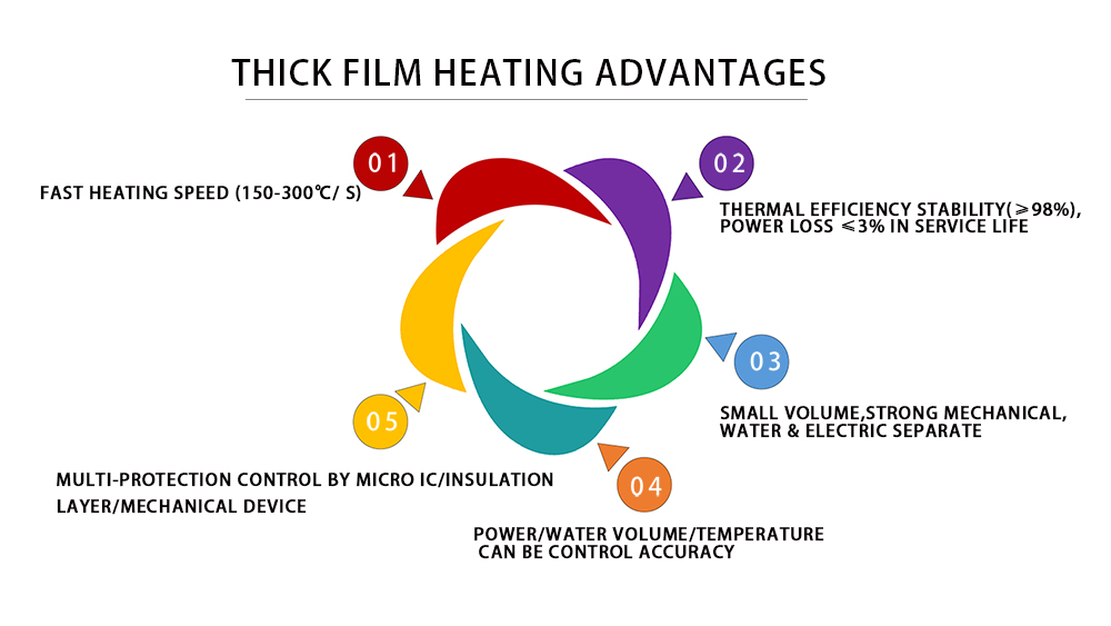 | thermal technology | traditional heat pipe heating | PTC element heating | Ceramic substrate heater | Thick film heating |