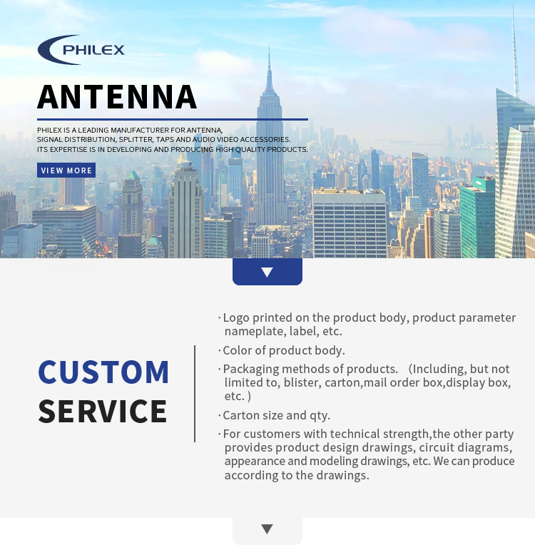 Philex is a leading manufacturer for antenna, signal distribution, splitter, taps and audio video accessories. Its expertise is in developing and producing high quality products. Philex has an enviable reputation for innovation, quality, reliability and excellent customer service.