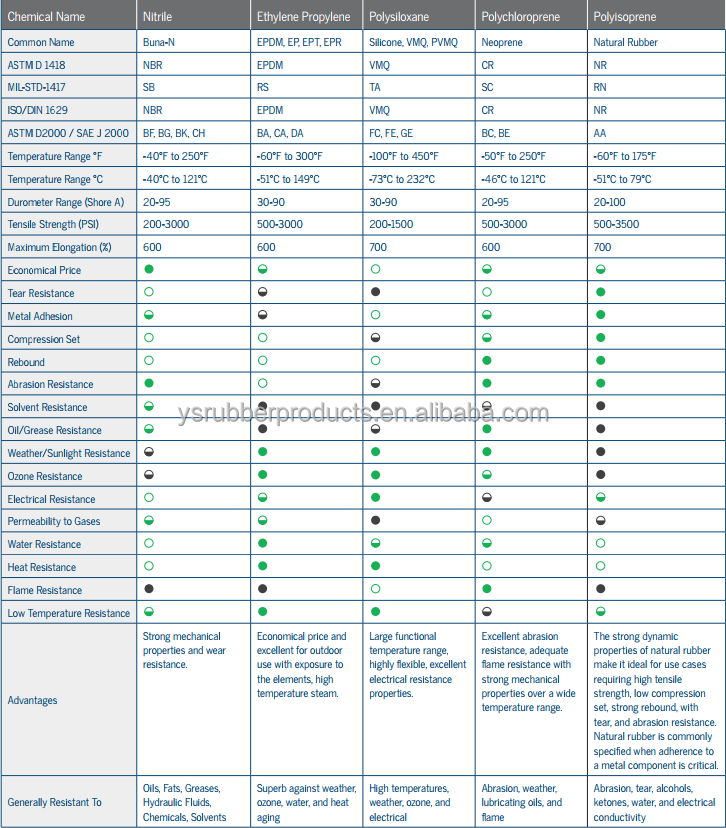 NR, NBR, SBR, CR, EPDM, TPR, TPU, Silicone, AEM, ACM, FVMQ/fluorosilicone rubber, FKM, FFKM HNBR, PU, foam rubber, etc. |