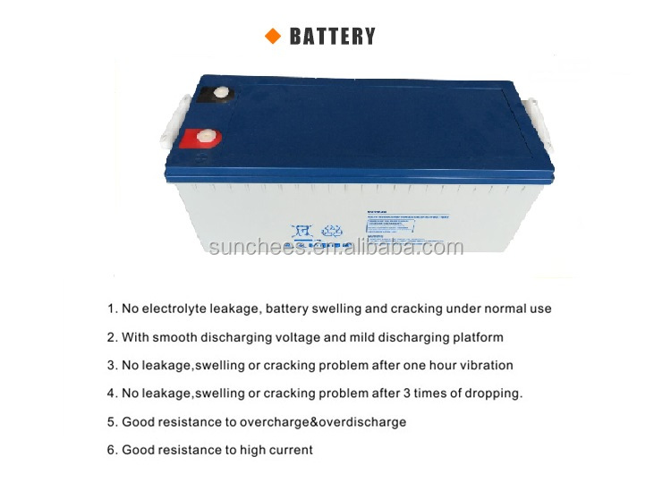 SOLAR POWER GEL BATTERY Capacity:12V/200AH Servicelife : 5-6years Size:522*240*219mm / Weight:59KG Total : 8PCS warranty :2 years, ship the free one for service |