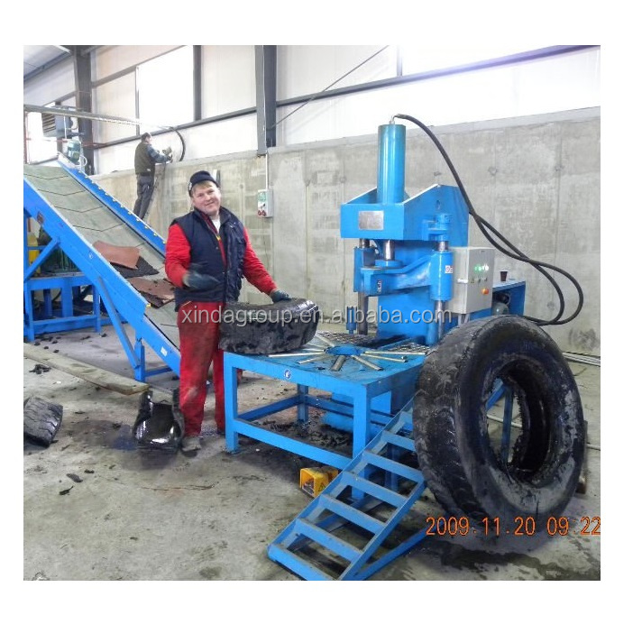 This machine is used to cut all kinds of tires, including steel tires, fiber tires, tires need to pull steel wires before cutting into different sizes of rubber blocks. It is mainly composed of motor, rotary platform, rolling frame, fixed blade frame, cutting blade frame, fuselage frame, oil cylinder, hydraulic station and control cabinet.