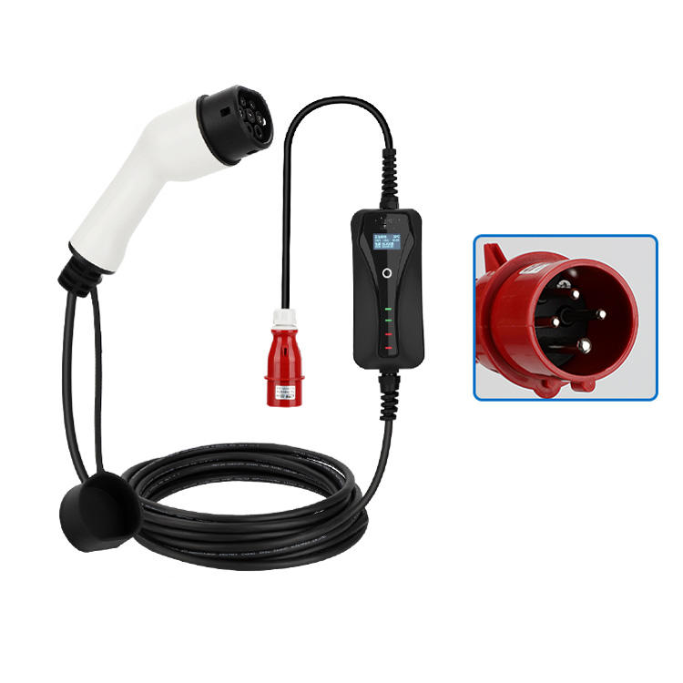 Hot AC type 2 CEE red plug 4 pin 16A EV portable charger with 5m / 10m long cable