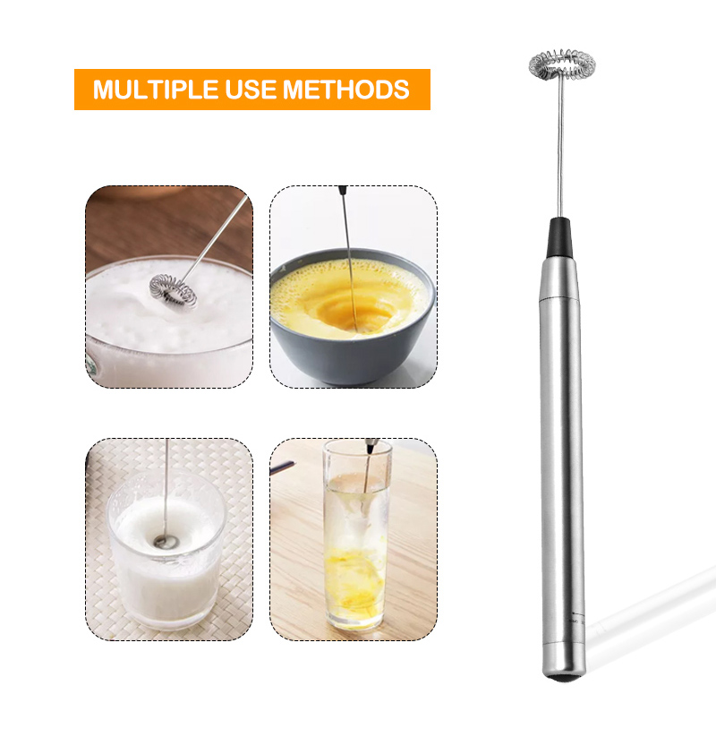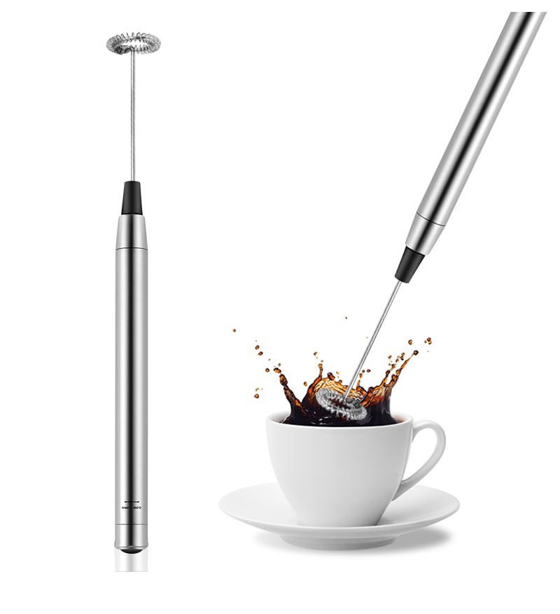 Hot Amazon New Design Electric Egg Whisk Coffee Blender Handheld Battery Powered Stainless Steel Mini Milk Frother