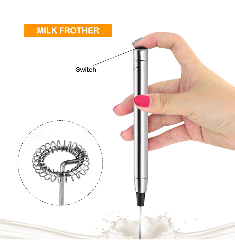 WHISPER QUIET - Coffee Froth Machine. Keep your mornings calm and peaceful as you make your hot coffee milk frother masterpiece. Built-in powerful and quiet motor. This cute little stick bubbler silently creates rich, smooth and fine foam for homemade coffee beverages in seconds. Requires 2 AAA batteries (not included).