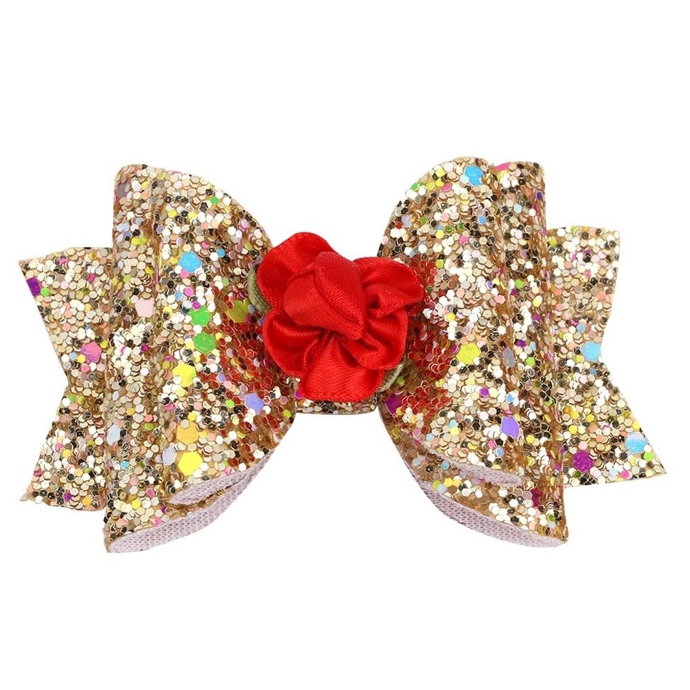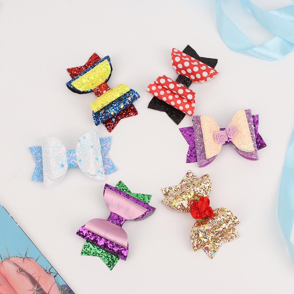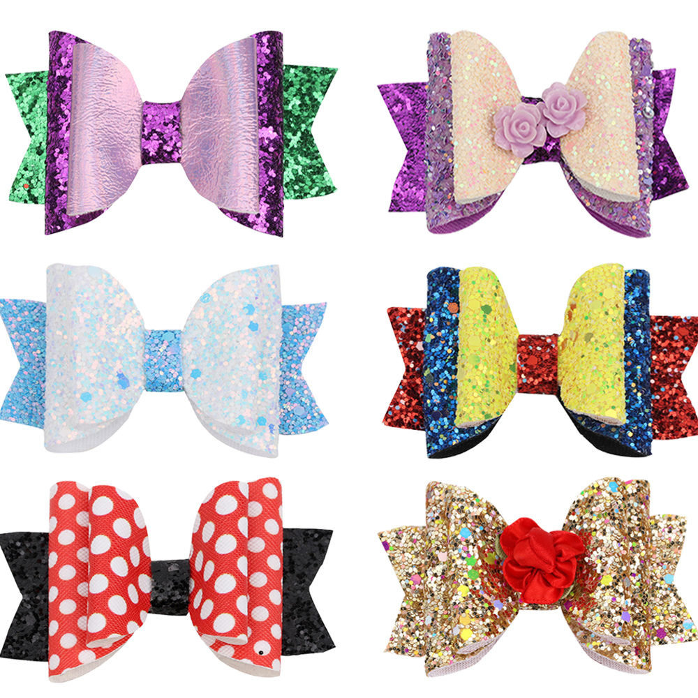 Hot Sale 3 Inch Glitter Polka Dot Barrette Baby Girl Flower Three Layer Hair Bow Stacking Hair Clips Kids Hair Fashion Accessories