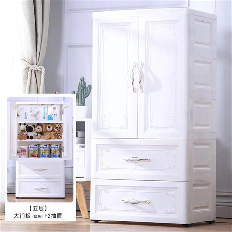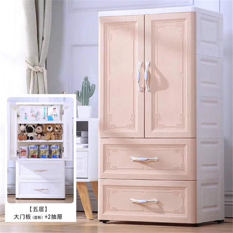 Hot Sale Bedroom 5 Tiers Clothes Drawer Cheap Plastic Storage Cabinet With 2 Doors
