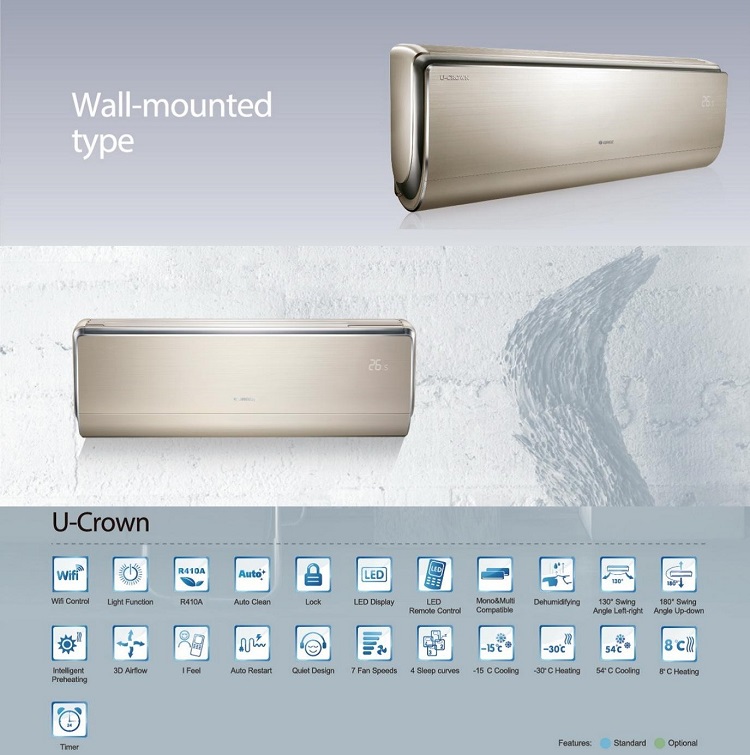 Hot Sale Gree Wall Mounted Air Conditioner U Shape Crown