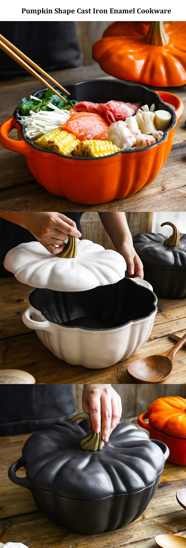 Hot Sale Nonstick Cooking Casserole Pot Dutch Oven 22/24cm Enameled Cast Iron Pumpkin Shaped Kitchen Pan