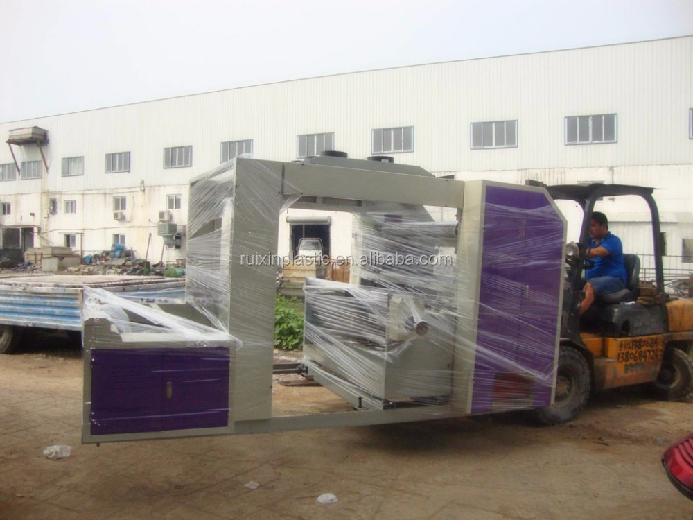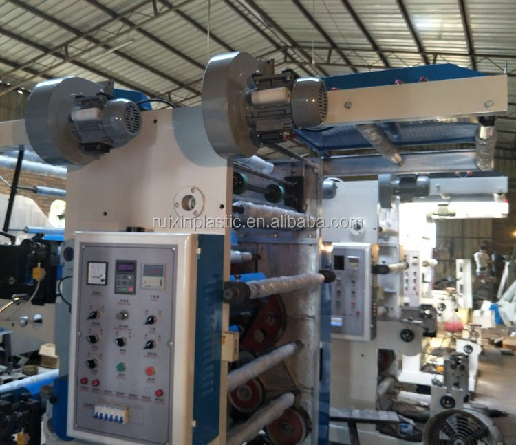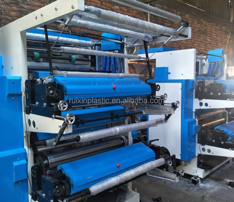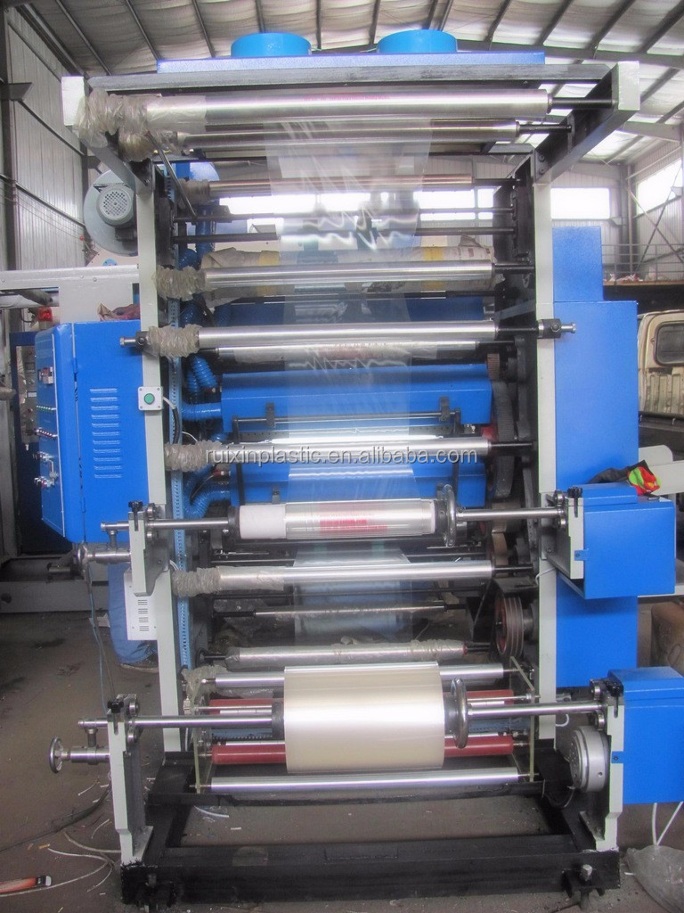 The flexographic printing machine is used for printing polyethylene, polypropylene bags, cellophane, web and other packaging materials, and is an ideal printing equipment for producing paper commodity packaging bags, supermarket handbags, T-shirt bags, clothing bags, etc.