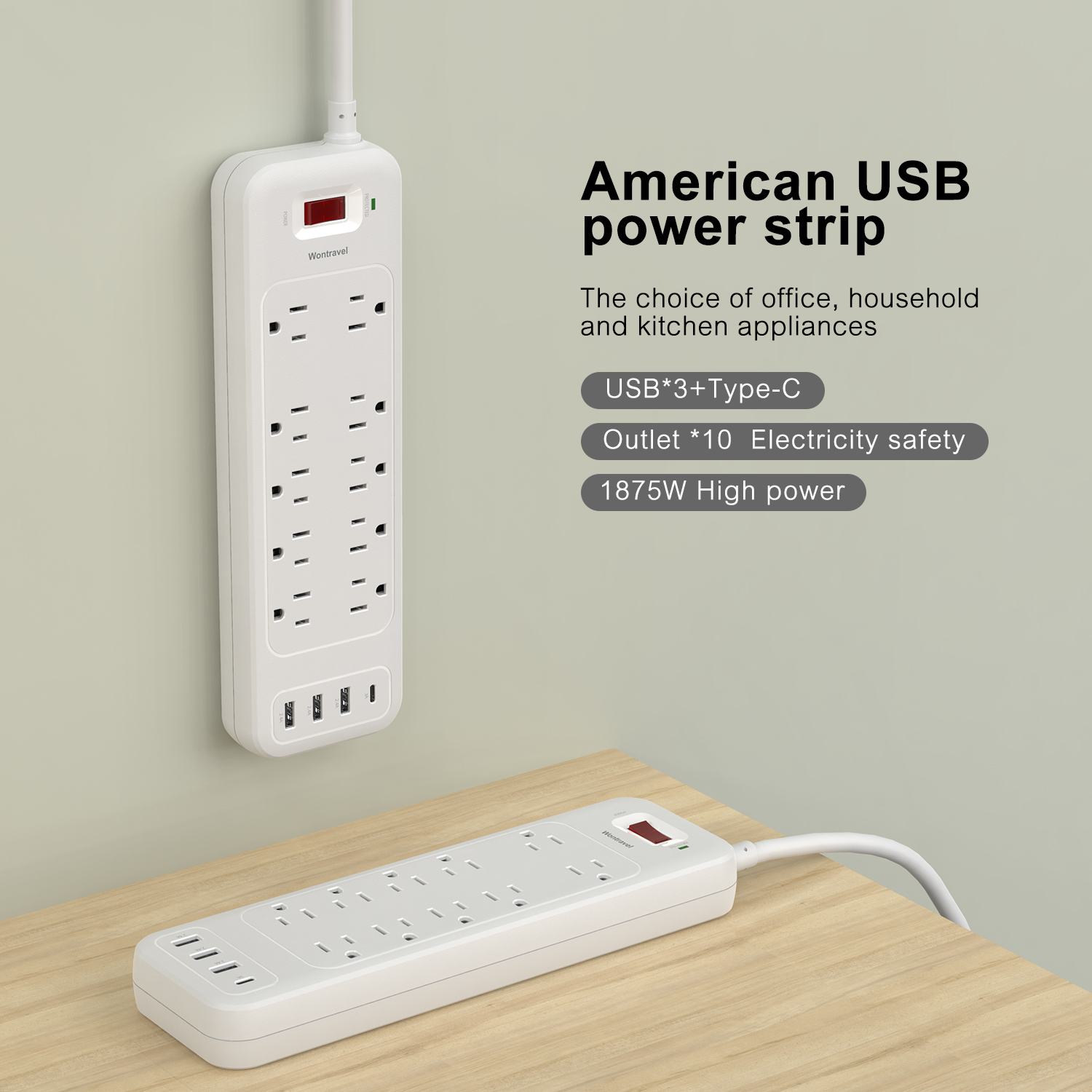 Hot Sale US Power Strip 10 AC Outlets Electrical Expansion Board with 3 USB Type C Outlets