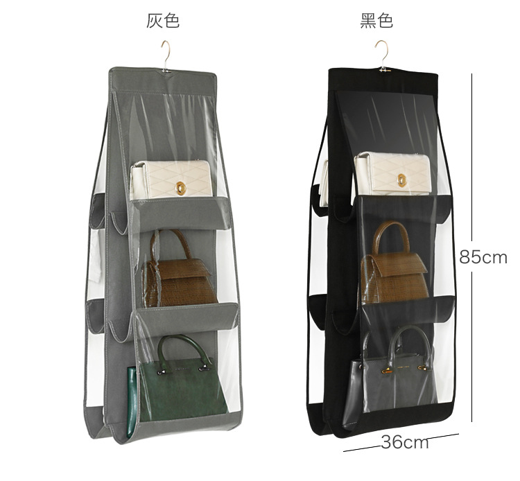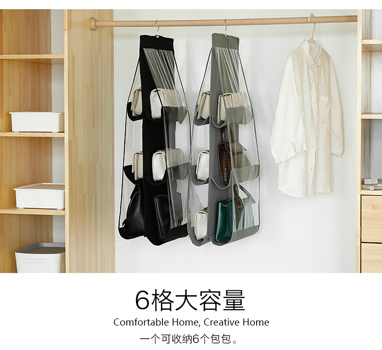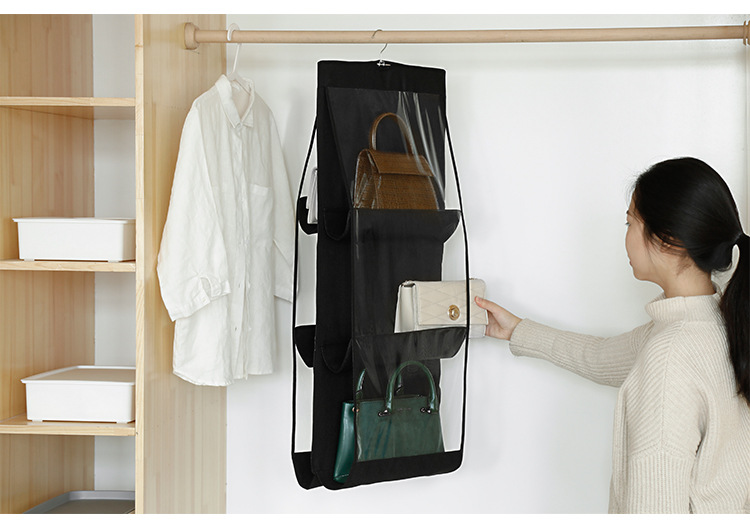 Hot Selling 6 Pockets Hanging Tote Organizer For Wardrobe Closet Transparent Organizer Double Sided Tote Storage Organizer