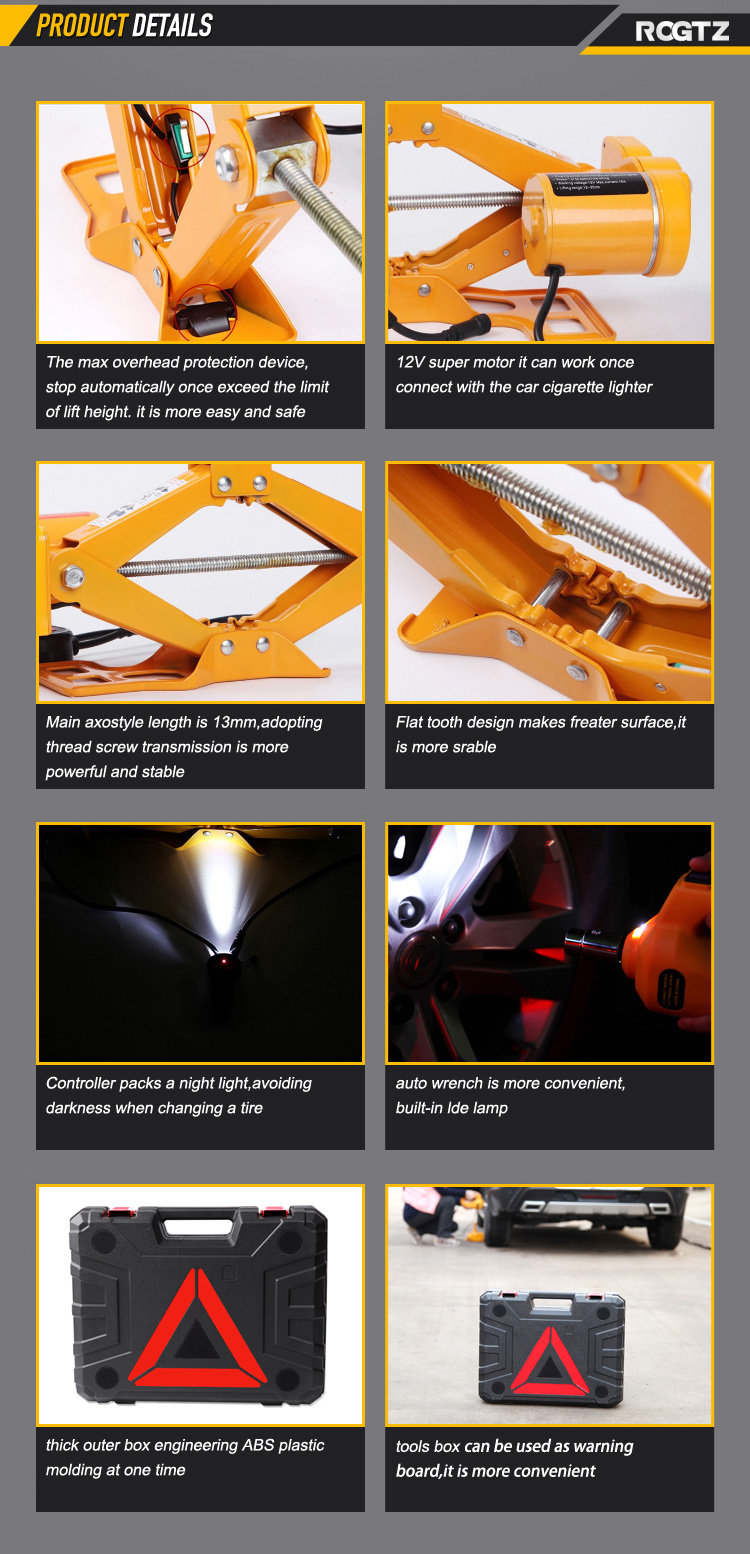 Portable High Lift 3 Ton Electric Scissor Car Jack and DC12V Electric Impact Wrench