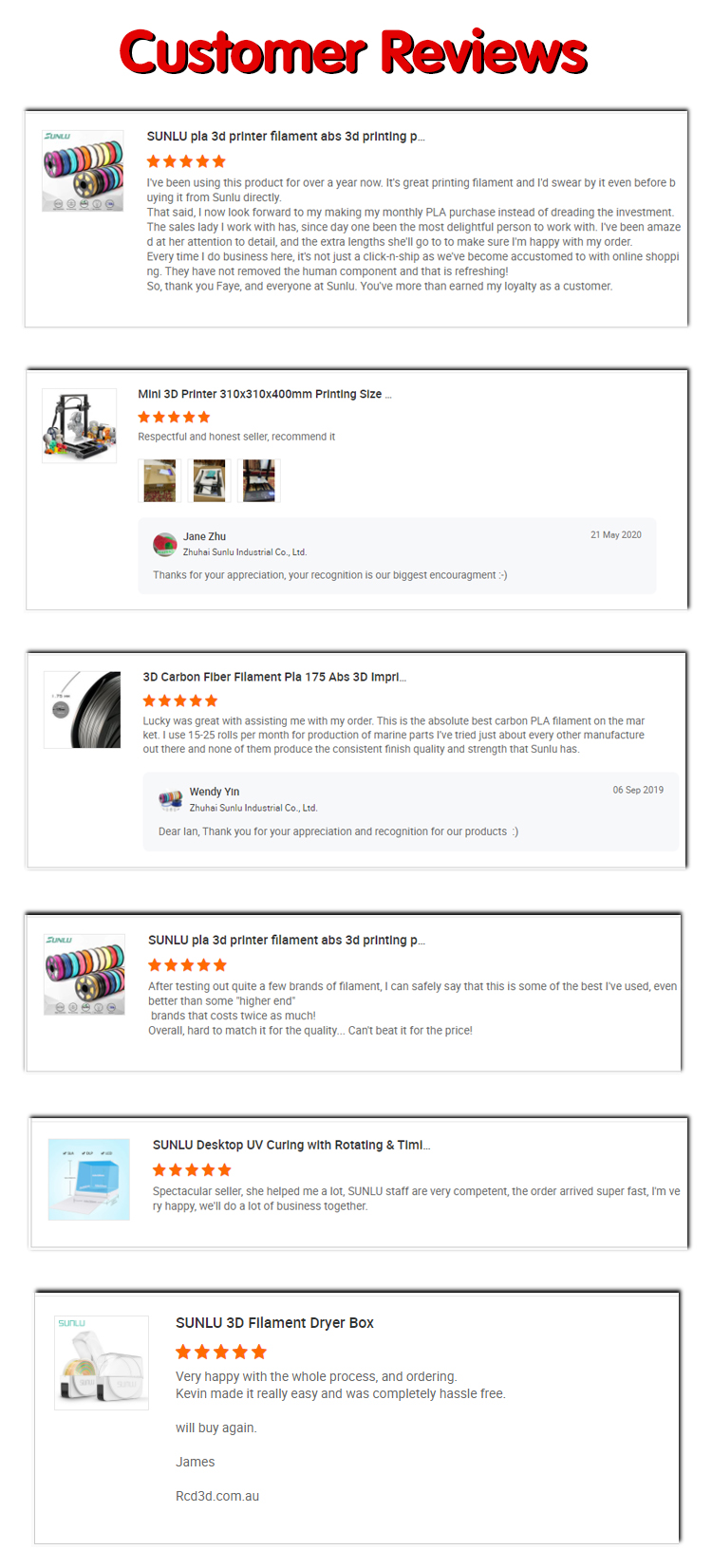 SUNLU is a direct factory certified by ISO9001, SGS, TUV.