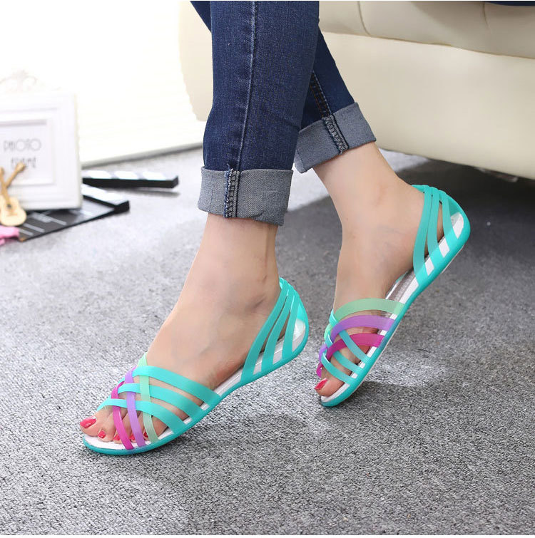 Hot Selling Women's Jelly Sandals Summer Sandals Women Flat Shoes Ladies Slip On Candy Color Open Toe Beach Shoes