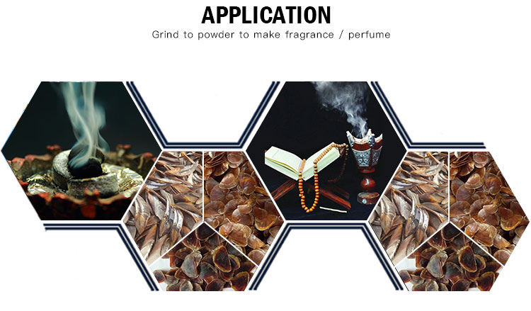 Application and market: Grind into powder to make incense/incense, the main market is Saudi Arabia, Indonesia, Sudan, Chad, etc.