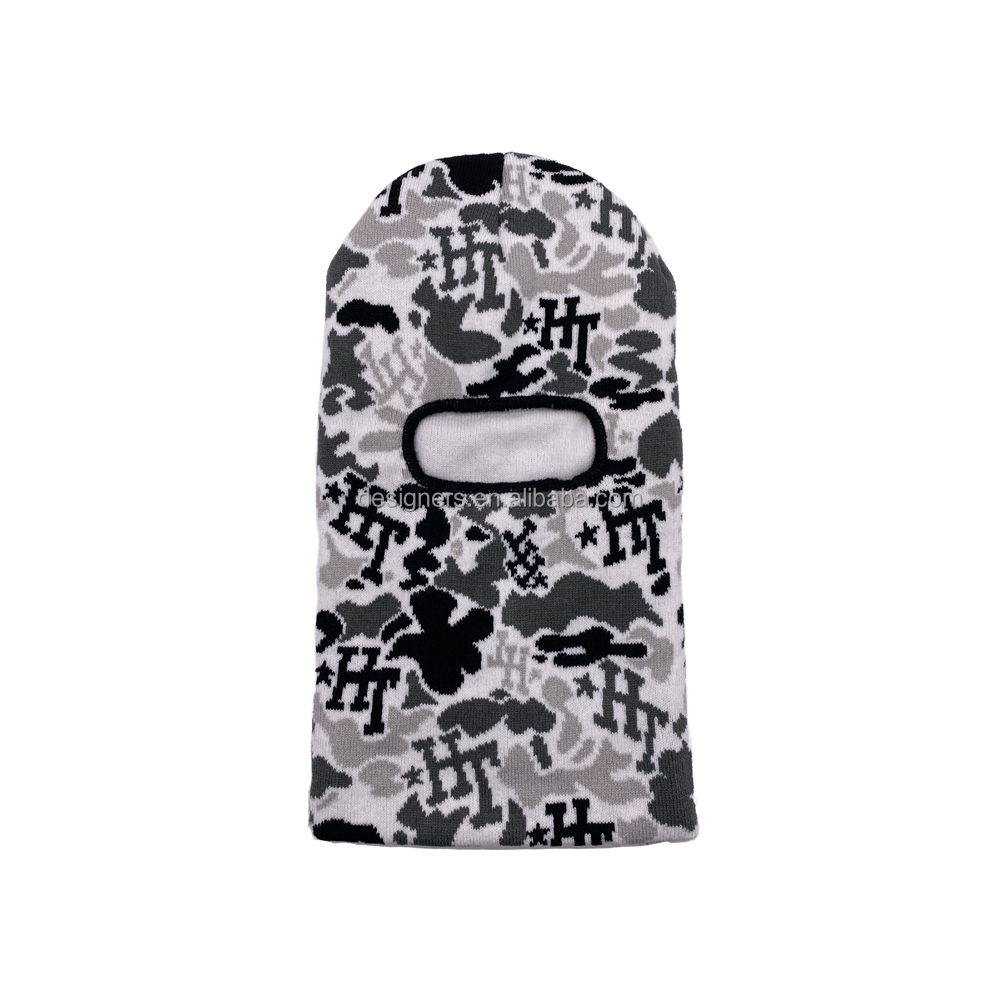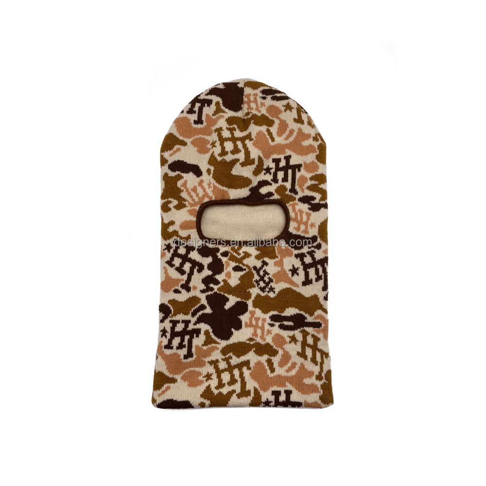 Hot sale custom label logo full face mask one hole pink camouflage balaclava designer knit hat straw hat ski mask